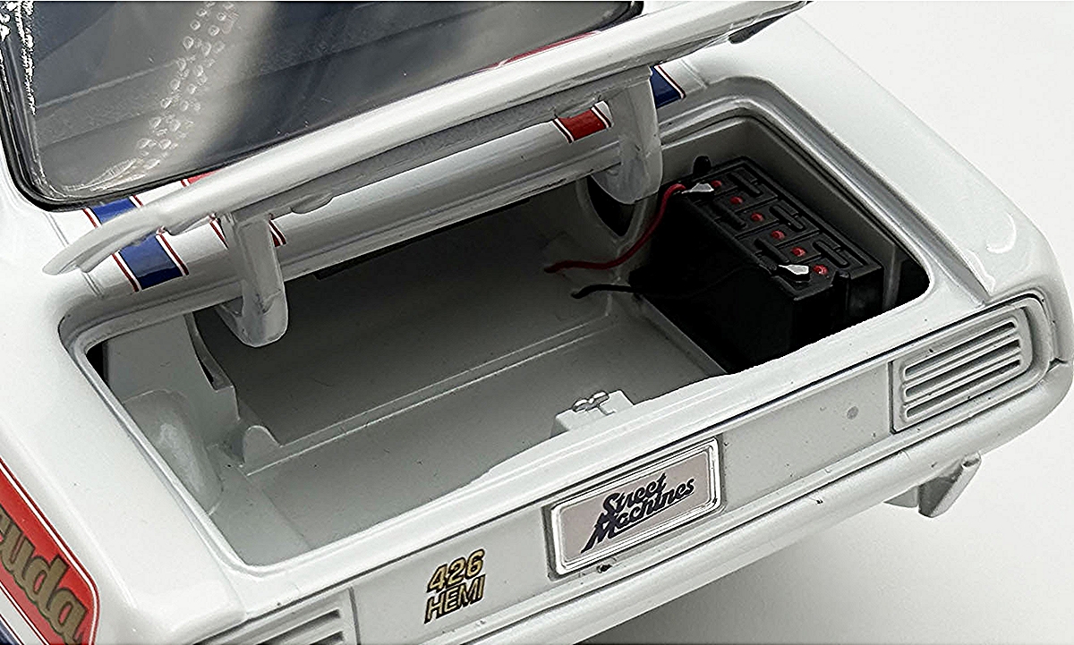 With its classic shape, tire-shredding American power, limited production and huge popularity a 1970 Hemi ‘Cuda became a holy grail for Mopar enthusiasts! In 1970 Plymouth offered a wide selection of V8 engines, but the undoubted king was the 426 HEMI beast! In our new Street Machine series, we’ve pulled out all the stops. We’ve raked the stance and outfitted the model with Vintage Centerline wheels and tires and added traction bars. Top it off with a fully custom paint job and so much more!